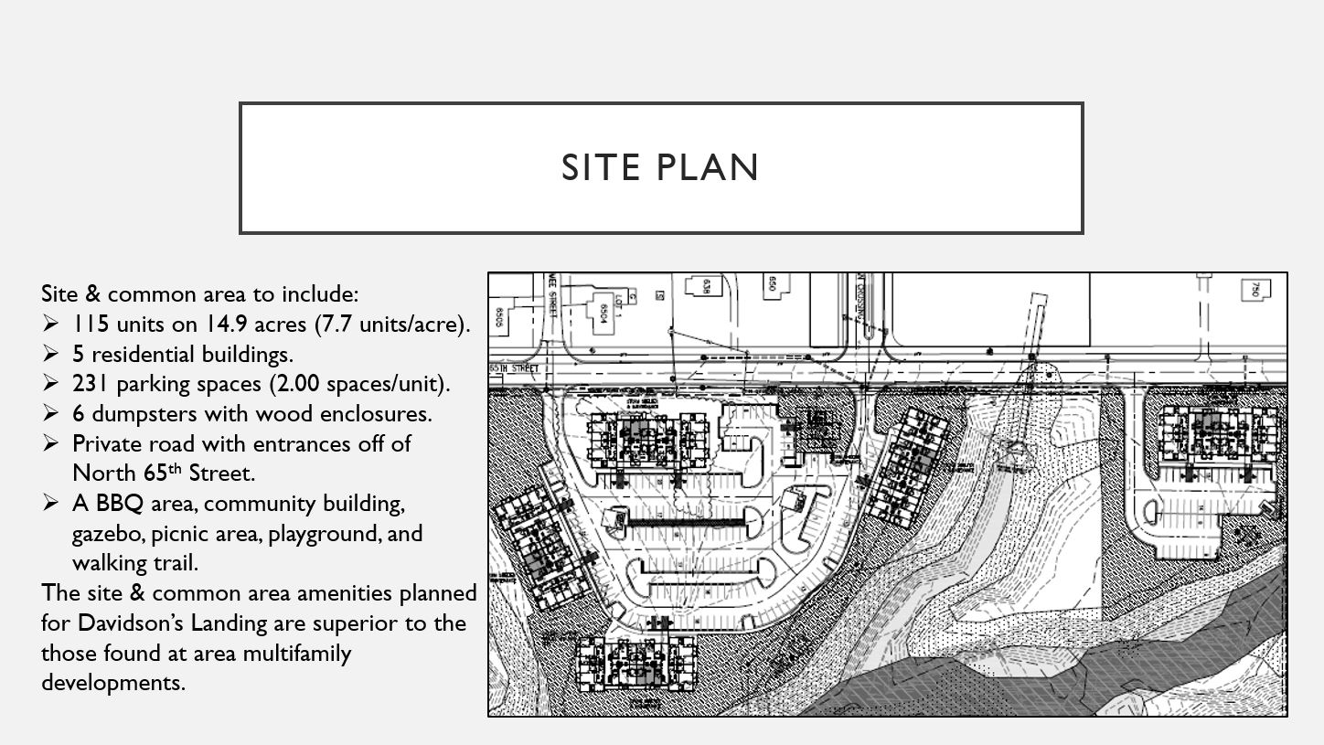 Tartan Residential made a presentation to the Unified Government Planning Commission on Monday, December 10, 2018 in Kansas City, Kansas. The purpose of the meeting was to evaluate the site plan for a proposed 115-unit apartment community known as Davidson’s Landing.